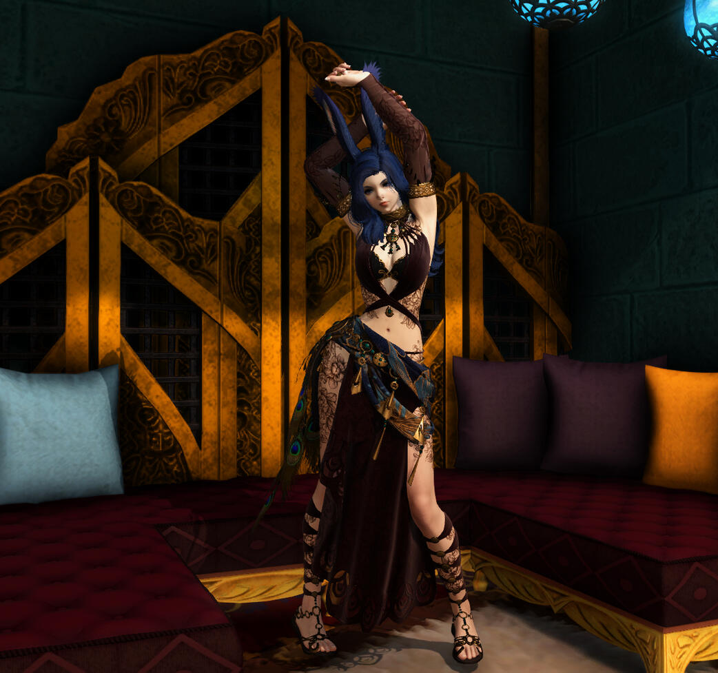 Arriving in Thanalan less than two turns ago, down from the Skatay Range, Ruu has quickly adjusted to city life. Developing a deep enjoyment for the finer things in life, Ruu first delved into the world of being a high-class escort and courtesan. After several years, however, she decided to shift her path slightly into modeling for adult magazines. After all, what's wrong with being paid to enjoy herself?