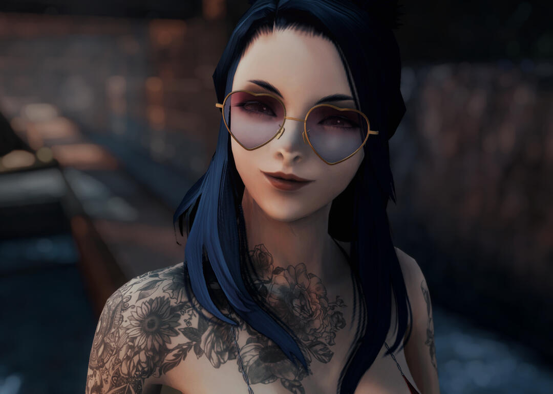 Open and affectionate, Ruu generally wears a bright, friendly smile on her pink, often glossed lips - though her expression can turn sassy and playful in a flash. With a keen glint of interest in her kohl-lined eyes to everything going on around her, there's precious little her inquisitive gaze doesn't pick up on. Her facial features are striking, with a distinctly Vieran nose, high cheekbones and a sharp jawline coming to a narrow point at her chin.
