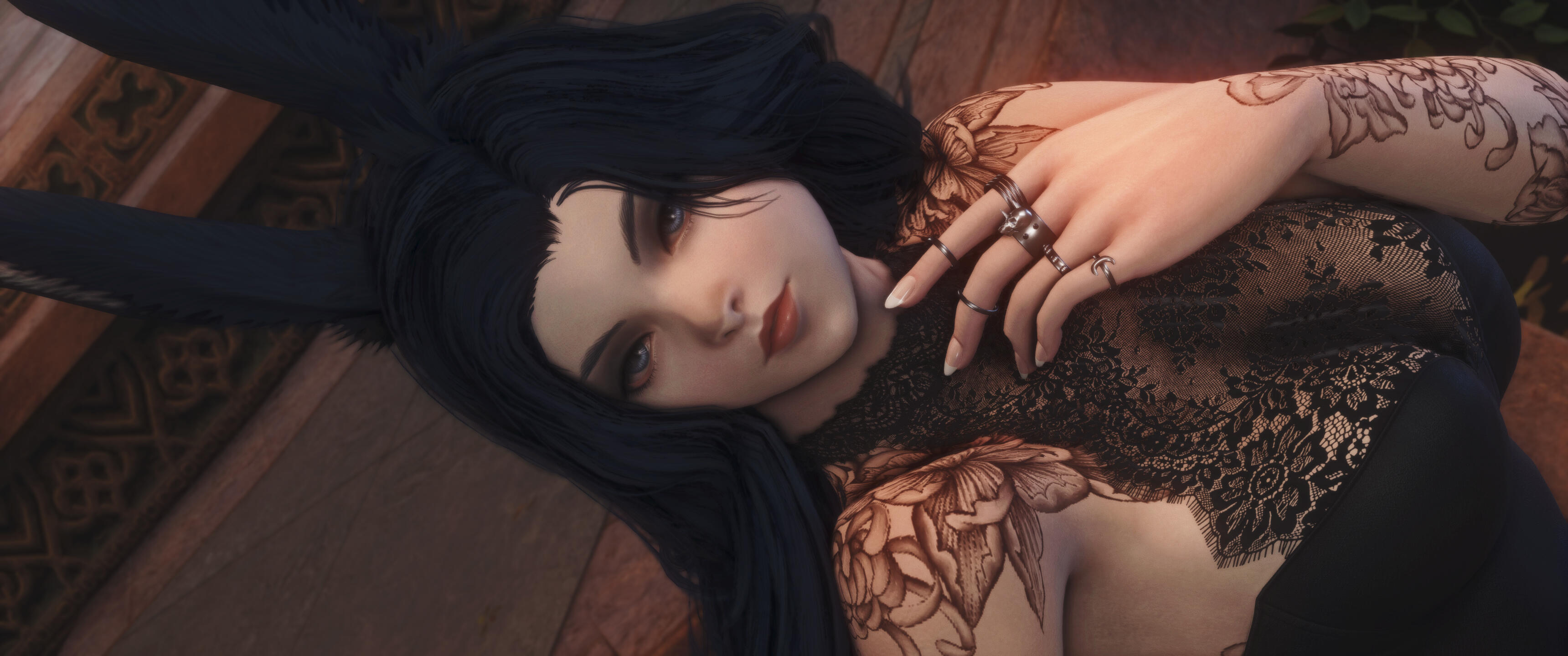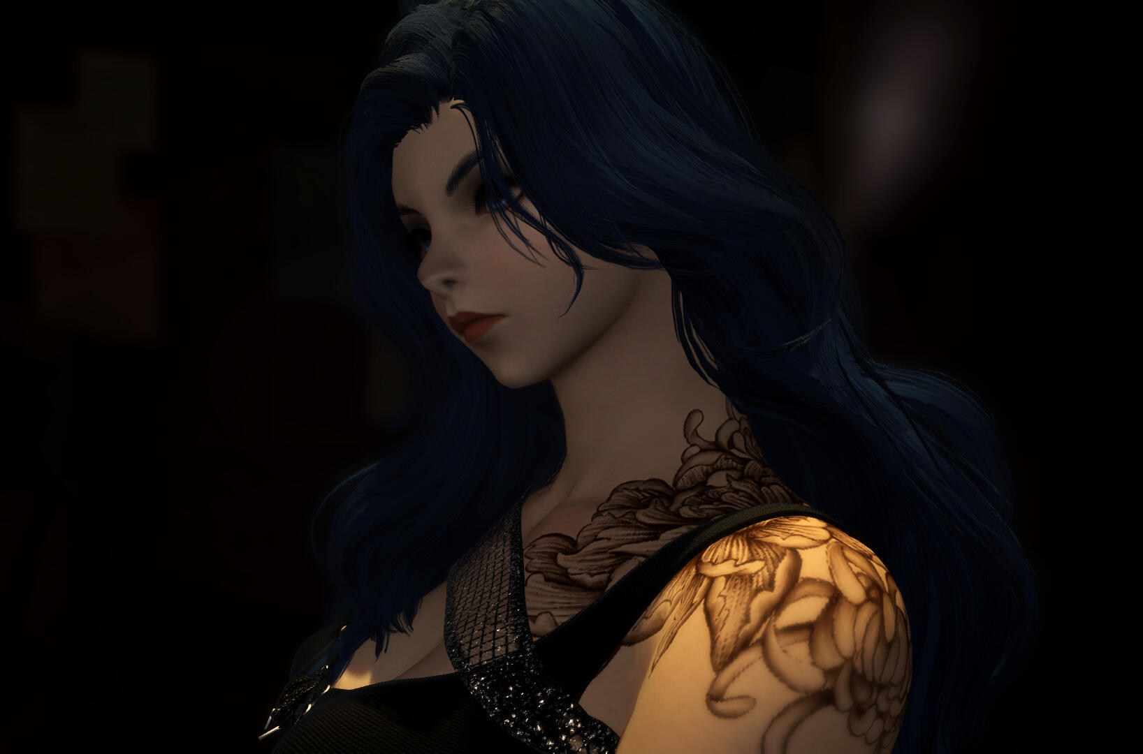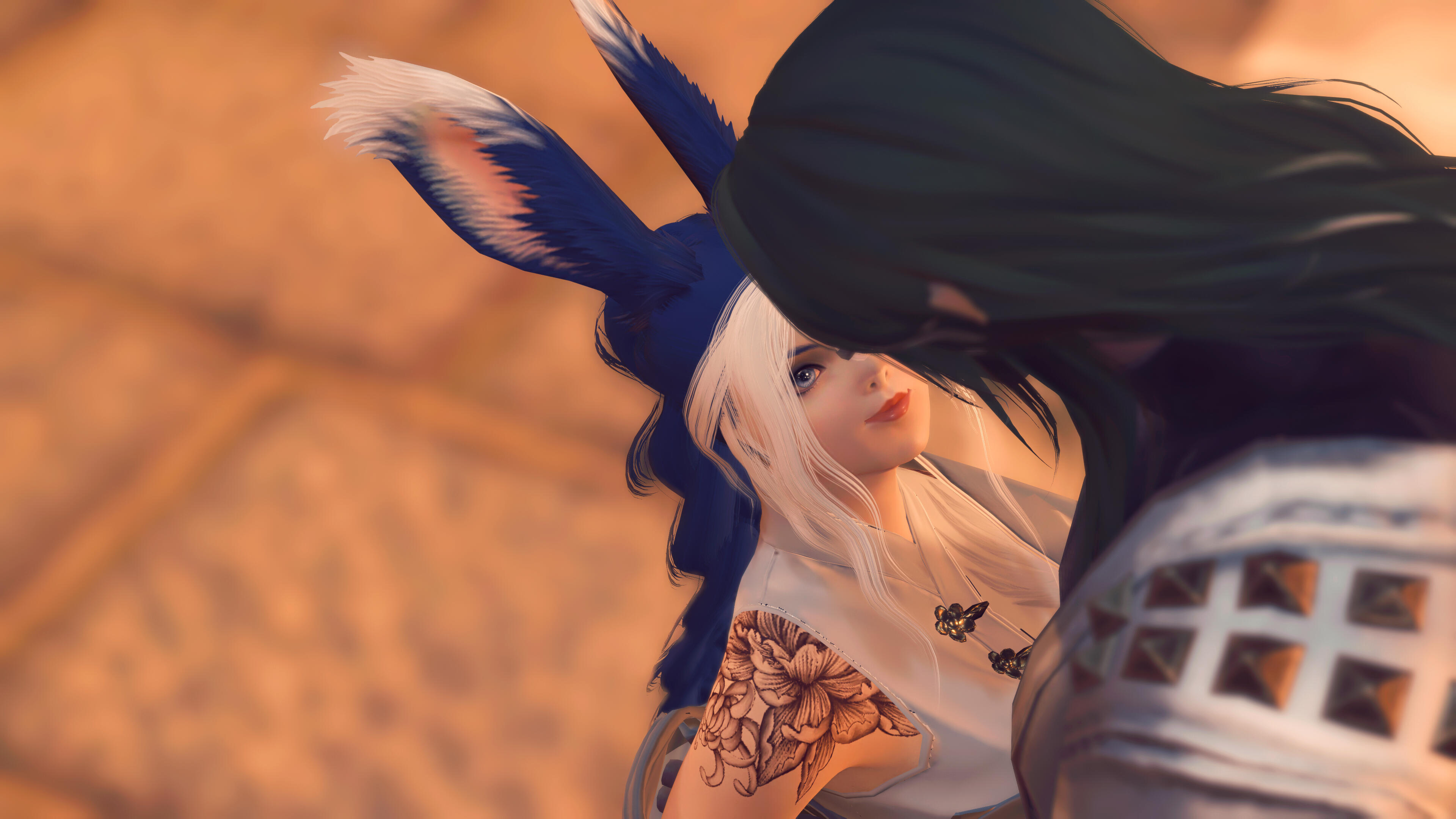 Open and affectionate, Ruu generally wears a bright, friendly smile on her pink, often glossed lips - though her expression can turn sassy and playful in a flash. With a keen glint of interest in her kohl-lined eyes to everything going on around her, there's precious little her inquisitive gaze doesn't pick up on. Her facial features are striking, with a distinctly Vieran nose, high cheekbones and a sharp jawline coming to a narrow point at her chin.