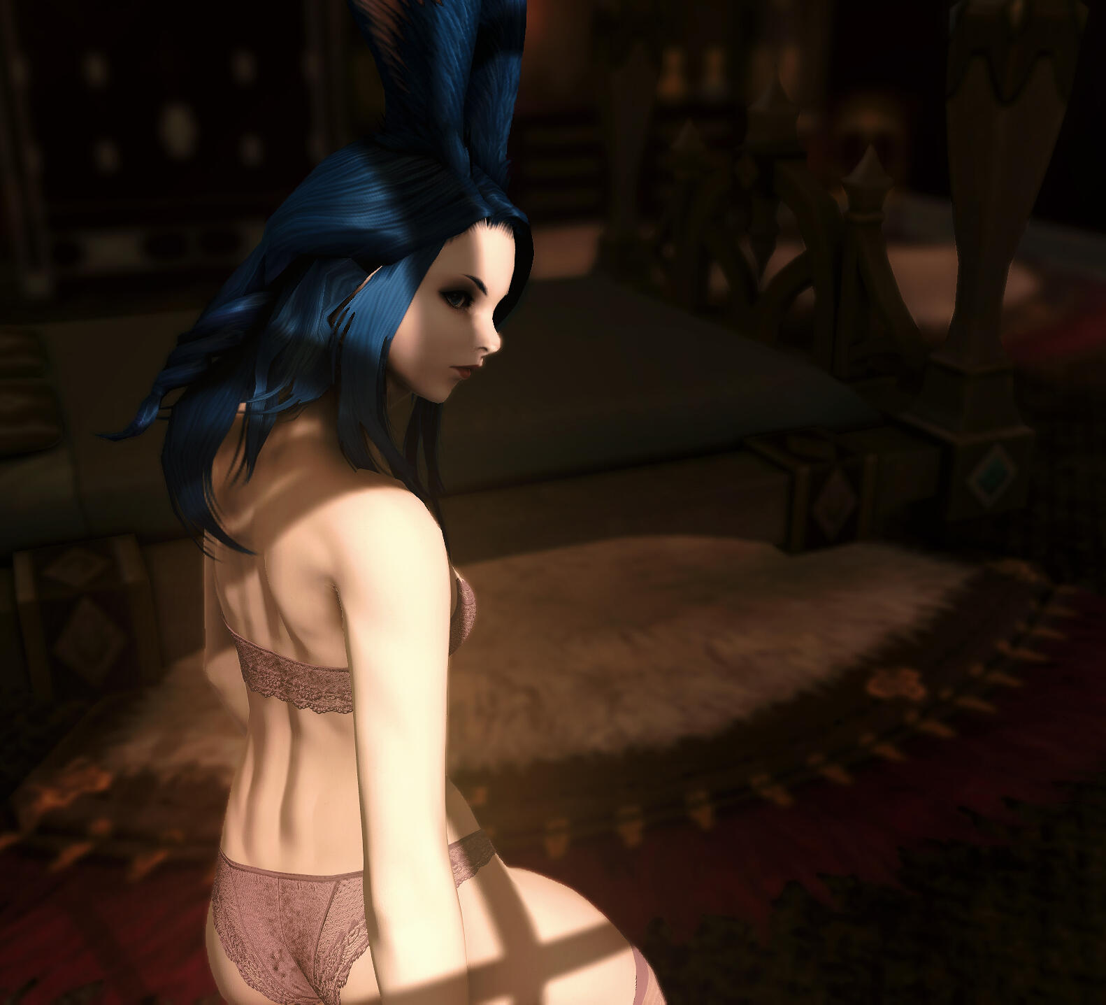 Arriving in Thanalan less than two turns ago, down from the Skatay Range, Ruu has quickly adjusted to city life. Developing a deep enjoyment for the finer things in life, Ruu first delved into the world of being a high-class escort and courtesan. After several years, however, she decided to shift her path slightly into modeling for adult magazines. After all, what's wrong with being paid to enjoy herself?