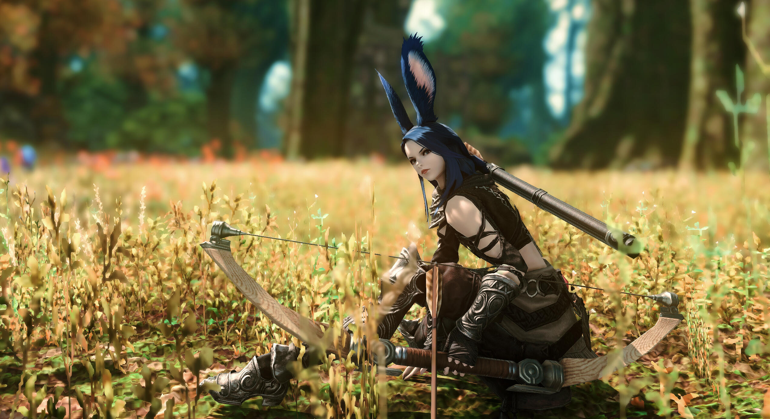 Although her physique is soft and curvy, there is a layer of pure muscle under the feminine voluptuousness, speaking to her self-directed training when not fulfilling her duties to her clan. Deceptively strong and quick, Ruu's toned arms allow her to wield her spear with deadly precision, and her long, powerful legs enable to her leap far distances or run tirelessly for malms on end. She's an energetic bun, not one to laze around or stay in one place for long, preferring action to conversation.